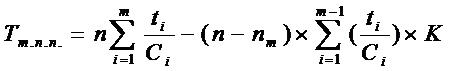 Час паралельного виконання суміжних операцій дорівнює добутку кількості деталей без однієї транспортної партії та тривалості меншої операції. Якщо останню позначити (t/C)к, то в загальному вигляді для будь-якої пари суміжних операцій