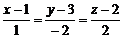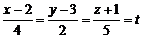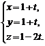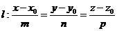 Запишемо рівняння заданої прямої у вигляді рівнянь двох площин, що проектують її відповідно на площини Оху і Oхz: