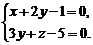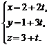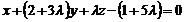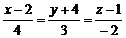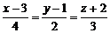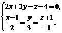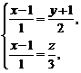Запишемо рівняння першої із заданих прямих за допомогою рівняння двох площин, що проектують її відповідно на площини Оху і Oyz: