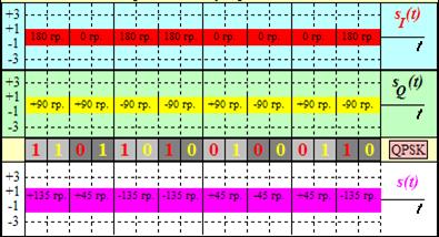 Рис. 3.5.1. Графики модулированных сигналов sI (t), sQ (t) и s КАМ(t) (для QPSK вар. 02 – КФМ-4)