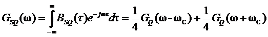 Спектральные плотности мощности GSI (f)и GSQ (f)сигналов SI (t) и SQ (t)можно найти по теореме Винера-Хинчина как преобразование Фурье от их корреляционных функций[2, стр.43]