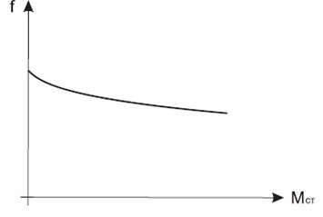 Она является обобщенным параметром, зависящим от момента инерции J, амплитуды максимального синхронизирующего момента Мmax, числа пар полюсов p. Период собственных круговых колебаний, равный 1/ω0, может служить внутренним эталоном времени. Электромагнитная постоянная времени обмоток управления Тзм=L/R характеризуется скорость протекания электромагнитных переходных процессов. Часто для уменьшения Тзм последовательно с обмоткой управления включают добавочное сопротивление. Уменьшать постоянную времени необходимо потому, что чем она больше, тем до меньшего значения нарастает ток за время импульса напряжения, меньше становится синхронизирующий момент, а, следовательно, и допустимый момент сопротивления. Предельная механическая характеристика – это зависимость допустимого момента сопротивления от частоты управляющих импульсов в установившемся режиме работы (рис. 1.11). С ростом частоты сказывается запаздывание в нарастании тока, обусловленное индуктивностью обмоток. При некоторой предельной частоте момент двигателя становится равным нулю.