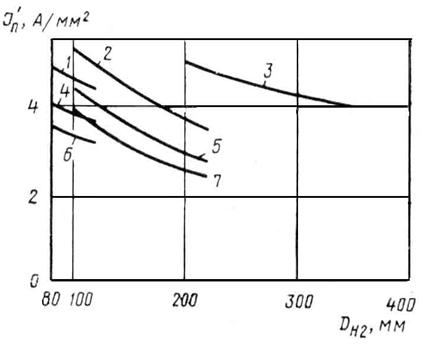 Рис. 10-30. Средние значения J 'П= f (D H2) при классе нагревостойкости изоляции F:
