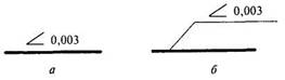 4.15 Если изображение (например, план чертежей систем вентиляции) не помещается на листе принятого формата, то его делят на несколько участков, размещая их на отдельных листах (ГОСТ 21.101). 4.16 При выполнении рабочей документации систем отопления и вентиляции следует также руководствоваться требованиями стандартов Единой системы конструкторской документации (ЕСКД), приведенными в приложении 3 ГОСТ 21.101, которые дополняют и не противоречат стандартам СПДС и настоящему стандарту. При необходимости применяют отдельные условные обозначения, установленные стандартами ЕСКД (классификационная группа 7), если эти обозначения не предусмотрены ГОСТ 21.205 (наПример, обозначение клапана воздушного автоматического (вантуза) по ГОСТ 2.785, обозначение насоса, построенное по функциональным признакам, по ГОСТ 2.782). 4.17 На чертежах и схемах перед размерным числом, определяющим величину уклона, наносят знак "Ð", острый угол которого должен быть направлен в сторону уклона. Величину уклона указывают в виде десятичной дроби с точностью до третьего знака. Обозначение уклона наносят непосредственно над линией контура (рисунок 4 а) или на полке линии-выноски (рисунок 4 б).