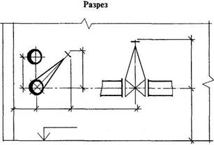 6.1.7 На фрагментах планов, разрезов и узлах (выносных элементах) трубопроводы, арматуру и другие устройства изображают упрощенно или условными графическими обозначениями в зависимости от масштаба чертежа и диаметра трубопровода. Трубопроводы, у которых на чертеже диаметры равны 2 мм и более, изображают упрощенно двумя линиями. При выполнении трубопровода упрощенно двумя линиями арматуру и другие устройства изображают также упрощенно с учетом их габаритных размеров (рисунок 8).