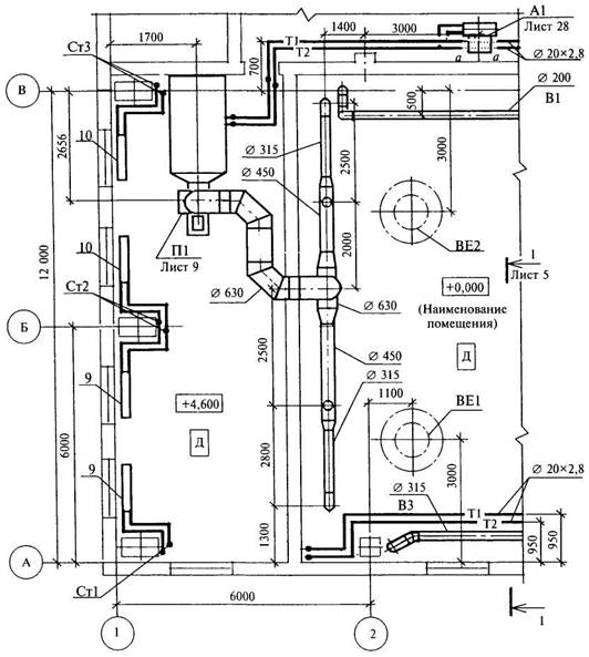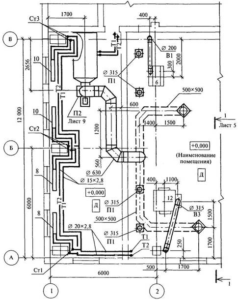 Рисунок Б.1 ПРИЛОЖЕНИЕ В (справочное) Примеры выполнения планов и разрезов чертежей систем В.1 Примеры выполнения планов чертежей систем приведены на рисунках В.1 и В.2. На рисунках В.1 и В.2 показаны отдельные части планов.