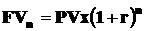 де І – сума відсотку за певний період часу; Р – початкова сума грошового внеску; n – кількість періодів, за якими здійснюється розрахунок відсоткових платежів; і – ставка відсотку, що використовується (десятичний дріб). Майбутню вартість грошей, дисконтовану по простих відсотках, визначають за формулою: