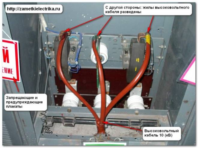 1. Проверяем отсутствие напряжения на кабеле указателем высокого напряжения