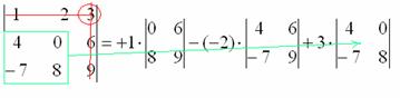 В следующем примере я раскрыл определитель по четвертому столбцу:
