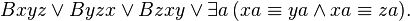 Each of the three variants of this axiom, all equivalent over the remaining Tarski's axioms to Euclid's parallel postulate, has an advantage over the others: A dispenses with existential quantifiers; B has the fewest variables and atomic sentences; C requires but one primitive notion, betweenness. This variant is the usual one given in the literature. A: Let a line segment join the midpoint of two sides of a given triangle. That line segment will be half as long as the third side. This is equivalent to the interior angles of any triangle summing to two right angles. B: Given any triangle, there exists a circle that includes all of its vertices.