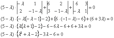 На главной диагонали матрицы Подчёркиваю важность порядка: перестановка «двойки» и «тройки» недопустима! Точнее, переставить числа можно: По обычному алгоритму нахождения обратной матрицы либо методом Жордано-Гаусса нетрудно получить Таким образом, матрица Желающие могут перемножить три матрицы и удостовериться, что произведение равно Каноническое разложение матрицы бывает удобно использовать в ряде задач, поскольку оно значительно упрощает некоторые матричные операции. Пример 3 Записать матрицу в базисе из собственных векторов Решение: найдем собственные значения. Составим и решим характеристическое уравнение: Мысленно либо на черновике подставим Вторая координата принудительно равна нулю: Таким образом, кратным собственным числам соответствует единственный собственный вектор ! Примечание: в общем случае такое утверждение неверно! Канонические разложение матрицы имеет вид Ответ: собственные векторы не образуют базиса, поэтому требуемое разложение неосуществимо. Обратите внимание на корректность и точность ответа – нас никто не спрашивал о собственных значениях и собственных векторах. Задача с матрицей «три на три» отличаются бОльшей технической сложностью: Пример 4 Найти собственные векторы линейного преобразования, заданного матрицей Решение: немного другая формулировка задачи смущать не должна – генеральная линия партии остаётся прежней. Энтузиасты могут провести самостоятельные выкладки по аналогии с Примером №1, я же ограничусь «рабочим» решением примера. По условию требуется найти собственные векторы, но алгоритм таков, что в первую очередь всё равно нужно найти собственные числа. Вычтем «лямбду» из всех чисел главной диагонали матрицы Определитель раскроем по первому столбцу: На этом месте немного притормозим и познакомимся с очень полезным техническим приёмом, который значительно упростит дальнейшую жизнь. Практически во всех методических пособиях вам будет предложено раскрыть все скобки, получить слева многочлен 3-ей степени, затем подбором найти корень и стать жертвой долгих мытарств, описанных в Примере №1 урока Сложные пределы. За годы практики я отработал рациональную схему, позволяющую избежать этих неприятностей: Сначала представим в виде произведения «хвост» левой части: Поэтому пробуем разложить на множители квадратный трёхчлен Таким образом: Вынесем Решаем ещё одно квадратное уравнение, в итоге: Это была самая длинная ветка алгоритма, в большинстве случаев произведение получается значительно быстрее. Собственные значения всегда стараемся расположить в порядке возрастания: Найдем собственные векторы: 1) Мысленно либо на черновике подставим значение