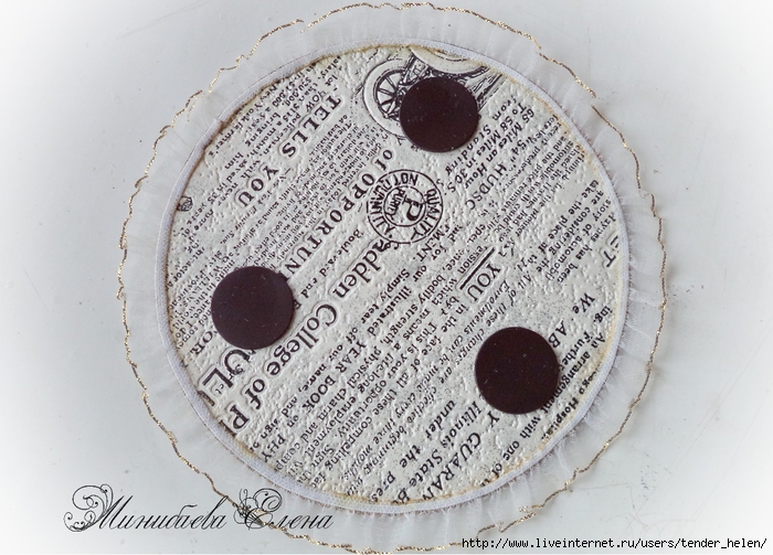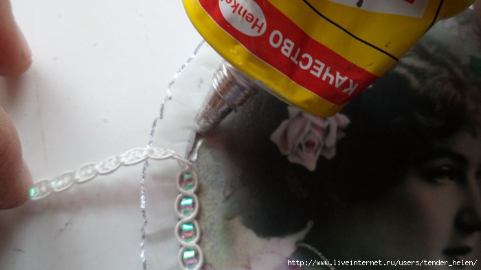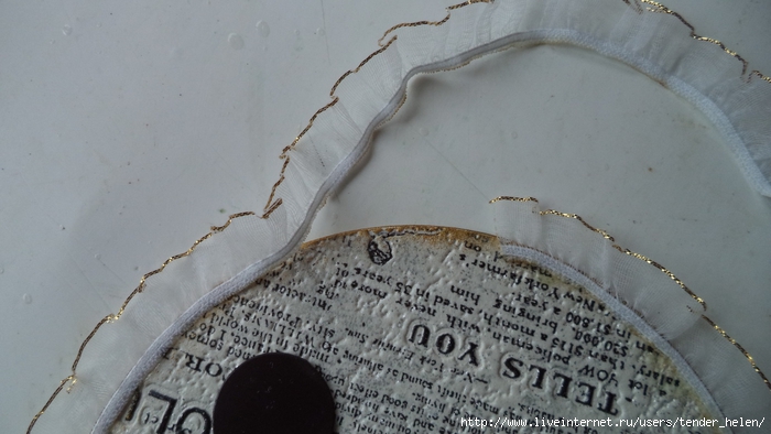 И приклеила на клей "Момент" рюшу капроновую. По фото всё видно и без пояснений...