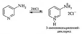 В молекуле β-аминопиридина аминогруппа не сопряжена с гетероатомом, поэтому он образует соли с двумя эквивалентами кислоты: