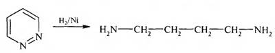 Пиридазин — бесцветная жидкость с tкип 207 °С. Пиридазин и его производные получают реакцией конденсации гидразина с 1,4-дикарбонильными соединениями (предельными или непредельными):