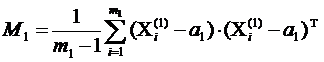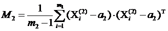 2. Вычислим ковариационные матрицы М1 и М2, где m1 и m2 количество преуспевающих и кризисных предприятий соответственно