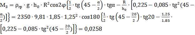 Величина изгибающего момента (на единицу длину оболочки) от давления грунта определяется по формуле