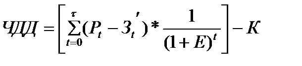 3.1.1 Показатели эффективности инвестиционных проектов Для оценки экономической эффективности инвестиционных проектов могут использоваться следующие критерии: – чистый дисконтированный доход (ЧДД); – индекс доходности (ИД); – внутренняя норма доходности (ВНД); – срок окупаемости с учетом фактора времени (дисконтирования). Чистый дисконтированный доход определяется как сумма следующего вида:
