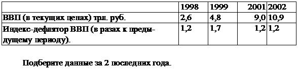 Рассчитайте темп роста и темп прироста номинального и реального ВВП, если в базисном периоде номинальный ВВП = 1000 д. ед., в отчетном 1020 д. ед., а дефлятор составил 1,01.