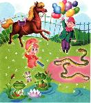 Я надул воздушный шарик Укусил его комарик. Лопнул шарик. Не беда Новый шар надую я. «До свидания, зоопарк!» - сказал Язычок и пошёл домой. Ты помнишь, как вместе с Язычком ходил в зоопарк? Кого Язычокувидел сначала? А потом? Ты помнишь, кого раньше увидел Язычок: змею или лошадку? А кого Язычок увидел позже: лягушек или бегемотика? На рисунке есть животные и предметы, которых Язычок не видел. Покажи их. А теперь попробуй рассказать и изобразить, кого видел и что делал Язычок в зоопарке.