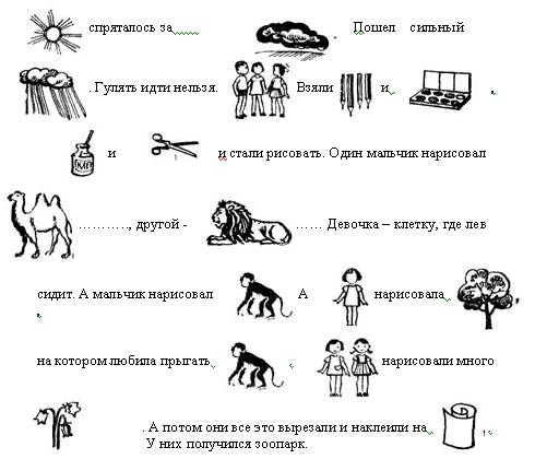 Задание. Прослушать рассказ «Зоопарк». Пересказать по опорным предметным картинкам. (Картинки даны в последовательности рассказа.)