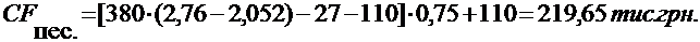 Згідно з умовою, ціна, постійні та змінні витрати можуть коливатися в межах 8 %. За умов найкращого розвитку ситуації ціни будуть найвищими, а витрати – найнижчими. За найгіршого ходу подій витрати будуть вищі, ніж середні, а ціни на готову продукцію – нижчі. Звідси величини грошових потоків за песимістичним і оптимістичним варіантом наступні: