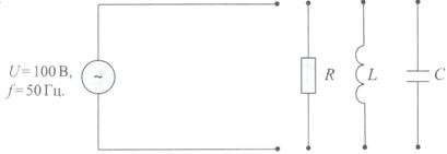 Задача 7 До джерела живлення, діюче значення напруги якого дорівнює U = 110 B, а частота f = 50 Гц, почергово вмикаються активний опір R = 36 Ом, індуктивність L = 50 мГн і ємність С = 150 мкФ (рис. 6).