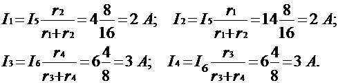 Користуючись формулами "чужого опору", розрахуємо спочатку струми I5, I6 (рис. 12,б):