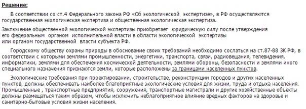 14. По решению городской мэрии на окраине города был выделен земельный участок для строительства нового зоопарка. Население микрорайона было категорически против такого строительства и добилось проведения научной экспертизы. Выводы этой экспертизы относительно допустимости строительства зоопарка на отведенном земельном участке оказались отрицательными. Несмотря на это, строительство объекта началось. Городское общество охраны природы по просьбе местного населения предъявило в арбитражный суд иск, в котором, опираясь на заключение научной экологической экспертизы, просило отменить решение мэрии о строительстве зоопарка. Какое решение должен принять суд? На каких принципах основывается экологическая экспертиза? Раскрыть полномочия Президента РФ, органов государственной власти и органов местного самоуправления в области экологической экспертизы (см. ФЗ «Об экологической экспертизе»; Постановление Правительства РФ «Об утверждении Положения о порядке проведения государственной экологической экспертизы»). В соответствии со ст.4 ФЗ «Об экологической экспертизе» в Российской Федерации осуществляются государственная экологическая экспертиза и общественная экологическая экспертиза. Проведение иных экологических экспертиз, например научных, ведомственных, международных, этот Закон не запрещает, но его действие на них не распространяется, а следовательно, заключения, подготовленные в рамках проведения таких экспертиз, не обладают статусом заключения государственной или общественной экологической экспертизы и не влекут юридических последствий, предусмотренных законодательством об экологической экспертизе. В соответствии со ст.20 ФЗ «Об экологической экспертизе» общественная экологическая экспертиза организуется и проводится по инициативе граждан и общественных организаций (объединений), а также по инициативе органов местного самоуправления общественными организациями (объединениями), основным направлением деятельности которых в соответствии с их уставами является охрана окружающей среды, в том числе организация и проведение экологической экспертизы, и которые зарегистрированы в порядке, установленном законодательством Российской Федерации. Поскольку данная экспертиза была инициирована гражданами, то она является общественной, а, соответственно разновидностью экологической экспертизы. В соответствии со ст.25 ч.2 ФЗ «Об экологической экспертизе» заключение общественной экологической экспертизы приобретает юридическую силу после утверждения его федеральным органом исполнительной власти в области экологической экспертизы или органом государственной власти субъекта Российской Федерации.
