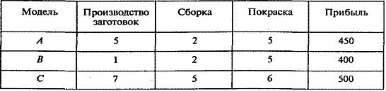 Задача 6. Василий Иванов — владелец небольшого мебельного цеха. Он производит столы трех моделей: А, В и С. Каждая модель требует определенных затрат времени на выполнение трех операций: производство заготовок, сборка и покраска. Василий имеет возможность продать все столы, которые он изготовит. Более того, модель С может быть продана и без покраски (модель C б.п.). При этом прибыль уменьшается на 200 руб. за штуку. Василий нанимает нескольких рабочих, которые работают у него по совместительству, так что количество часов, отводимое на каждый вид работ, изменяется от месяца к месяцу. Постройте модель линейного программирования, которая помогла бы Иванову найти такую программу выпуска продукции, чтобы прибыль в следующем месяце была максимальной. Предполагается, что по каждому виду работ возможны трудозатраты до 100 ч. В следующей таблице указаны время (в часах), необходимое для выполнения операций по производству столов каждой модели, и прибыль (в руб.), которая может быть получена от реализации каждого изделия: