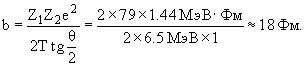 1. Альфа-частицы с кинетической энергией T = 6.5 МэВ испытывают резерфордовское рассеяние на ядре золота 197Au. Определить: 1) параметр столкновения bдля альфа-частиц, наблюдаемых под углом