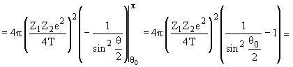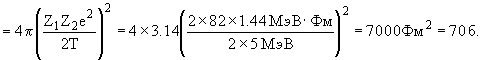 то есть при одинаковых условиях сечение рассеяния на золоте будет в 37 раз больше, чем на алюминии. 3. Вычислить сечение рассеяния a -частицы с кинетической энергией T = 5 МэВ кулоновским полем ядра 208Pb под углами больше 900. Искомое сечение получим интегрированием формулы Резерфорда
