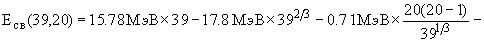 где Eсв(A,Z) - энергия связи ядра, A - массовое число. Полная энергия связи ядра Eсв(A,Z) = [Zmp + (A-Z)mn - mя(A,Z)]c2 = [Zmp + (A-Z)mn - mат(A,Z) - Zme]c2 Используя энергетические единицы для масс 1а.е.м.= 931.49 МэВ, получаем для ядра 16O