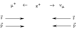 Импульсы и спины мюона и нейтрино в исходном распаде пиона будут выгдядеть следующим образом: