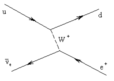 e не будет взаимодействовать с d-кварком с участием W-бозона (нельзя нарисовать двухузловую диаграмму такого процесса). Однако e может рассеиваться на d-кварке, с участием Z-бозона.