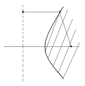 Пример 3.7.1. Рыболовецкое судно может разгружаться в порту Решение. Множество точек, отправляясь из которых судно затратит одинаковое время на разгрузку, представляет собой ветвь гиперболы с фокусами в точках Ответ: Из точек заштрихованной области выгоднее идти на разгрузку в