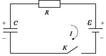 Конденсатором называется совокупность проводников, разделённых диэлектриком. Диэлектрик нужен, чтобы такая система могла накопить заряд, не разряжаясь. В подавляющем большинстве случаев конденсатор представляет собой два электрода (обкладки) различной конфигурации, на которых скапливаются одинаковые по величине и разноимённые по знаку заряды. Так как диэлектрический слой имеет очень большое сопротивление, то ток утечки чрезвычайно мал, и конденсатор может хранить заряд в течение долгого времени без существенных потерь. Величина Так как конденсатор способен длительное время сохранять заряд, то его можно использовать в качестве элемента памяти или устройства хранения электрической энергии. Компоненты биологической ткани обладают свойствами электролитов (цитоплазма, тканевая жидкость) и свойствами диэлектриков (клеточные мембраны). Клетки окружены межклеточной жидкостью, а внутри они содержат цитоплазму. Поэтому каждая клетка в отдельности, равно как и слои клеток могут быть рассмотрены как конденсаторы. Только ёмкость таких конденсаторов не постоянна, всё время изменяется, как и все прочие характеристики человеческого организма, в отличие от конденсаторов, изготовленных человеком. В среднем, ёмкость такого конденсатора может достигать до 40 мкФ на 1 см2 поверхности клетки. Если через ткань проходит постоянный электрический ток, то происходит накопление электрических зарядов по обе стороны клеточных мембран и других границ раздела (внутриклеточные мембраны митохондрий и т.п.), т.е., биологический объект заряжается подобно конденсатору. В зависимости от механизма накопления заряда в ткани различают несколько видов ёмкостей: 1. Поверхностная ёмкость, обусловленная накоплением заряда на поверхности объекта 2. Мембранная ёмкость, характеризующая ёмкостные свойства на границах разделов «мембрана-окружающая жидкость» 3. Дипольная ёмкость, связанная с поляризацией тканевых дипольных молекул (фосфолипиды и т.д.) 4. Ионная ёмкость, обусловленная деформацией сольватных оболочек ионов тканевых электролитов во внешнем электрическом поле 5. Электронная ёмкость, обусловленная деформацией электронных оболочек атомов в электрическом поле. Рассмотрим сначала процесс заряда конденсатора. В начальный момент времени (t = 0) замкнем ключ K и в цепи пойдет ток, заряжающий конденсатор. Применением закона Ома и закона Кирхгофа найдём временную зависимость зарядного тока: Убывание тока можно пояснить постепенным накоплением заряда на обкладках конденсатора, в результате чего формируется электрическое поле, направленное противоположно полю источника. Таким образом, видно, что в данном переходном процессе (включение или выключение тока) в RC-цепи ток меняется не скачком, а плавно. Такое же явление можно наблюдать в других цепях, содержащих конденсаторы и катушки, генерирующие магнитное поле. Можно логарифмировать это выражение, получим Так как у нас в этой цепи 2 потребителя ― резистор и конденсатор, то можно рассмотреть падение напряжения на них. По закону Ома находим падение напряжения на резисторе По второму закону Кирхгофа можно также найти падение напряжения на конденсаторе: