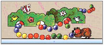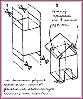 Сними выкройку, перенеси ее на плотную бумагу и раскрась красками или оклей цветной бумагой с обеих сторон. Теперь на крышку от коробки наклей домик и хотя бы 2 живые изгороди. Чем больше изгородей вокруг домика, тем сложнее будет игра и тем больше тебе потребуется терпения.