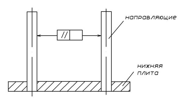 Технические требования на сборку изделия и его узлов указываются на сборочных чертежах сборочных единиц, в сопроводительной документации и задании на разработку технологического процесса сборки. Анализ технических требований предусматривает подробный разбор всех указанных требований при действии наихудших из предложенных граничных условий эксплуатации. При этом анализируется корректность задания технических требований для данных условий сборки и эксплуатации, последствия невыполнения (или неполного выполнения) требования, возможность контроля выполнения требований в процессе сборки. Целью анализа технических требований является разработка наиболее оптимальных и экономически оправданных путей реализации и контроля предложенных требований. В результате анализа вырабатываются технологические задачи по выполнению технических требований в процессе сборки изделий. Рассматриваются различные технологические возможности обеспечения данного требования, и предлагается наиболее оптимальный вариант решения поставленных задач. Оптимальность решения определяется исходя из экономических суждений, эксплуатационных особенностей изделия, общей технической оснащенности производства, требований к квалификации рабочих, реализующих предложенное технологическое решение. Условно технические требования, учитываемые при проектировании сборочных технологических процессов, можно разделить на эксплуатационные и точностные. Форма задания этих требований может быть количественной и (или) качественной. К точностным характеристикам можно отнести требования: - по соблюдению точности пространственного положения собираемых деталей и сборочных узлов (взаимная перпендикулярность и параллельность деталей, их торцевое или радиальное биение и т.п.); - по точности взаимного перемещения деталей (линейное или угловое); - по точности монтажных зазоров и натягов, обеспечивающих штатную работу подшипников, зубчатых или червячных зацеплений, винтовых и шариковых пар и т.д.; - по точности и характеру выполнения сопряжения (например, обеспечить соединение с натягом на прессе с силой 100±5 Н при плавном взаимном перемещении деталей, исключив ударную нагрузку); - по точности выдерживаемой силы или момента затяжки при сборке ответственных соединений. Эксплуатационные характеристики объединяют требования, которые диктуются особенностями работы изделия, обычно заданные с коэффициентом запаса. К таким требованиям относятся: плотность и жесткость материала, показатель герметичности соединения, допустимое значение дисбаланса вращающихся узлов, граничные температурные значения эксплуатации и т.п. Рекомендуется выполнять проверку технических характеристик по узлам, к которым они относятся. Это делается для предотвращения разборки всего изделия при необходимости регулировки. Пример 1. а) Точностным требованием является отклонение от взаимной параллельности двух цилиндрических направляющих, установленных по посадке с гарантированным натягом, в конструкции блока штампов (см. рис. 1). Такие требования задаются всегда в цифрах по соответствующему классу точности [2].
