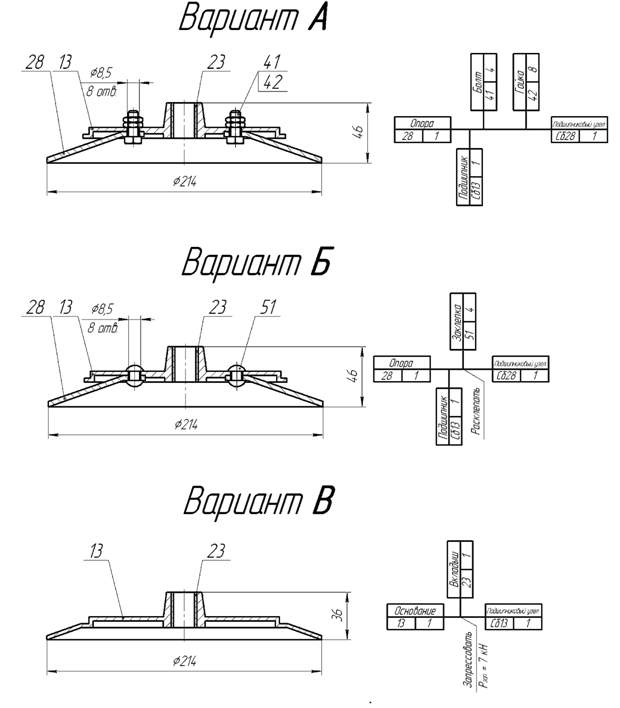 Разработку технологической части дипломного проекта конструкторских специальностей можно условно разделить на три направления. Первое направление можно назвать аналитическим, где студент должен продемонстрировать возможности проанализировать конструкторские решения дипломного проекта с точки зрения технологической оптимальности изготовления. В этой части дипломного проекта необходимо учитывать эксплуатационные характеристики изделия и влияние на них технологических решений. Второе направление – прикладное, здесь перед студентом стоит задача разработать технологический процесс сборки изделия или отдельной сборочной единицы с учетом выбранного в результате анализа конструктивного решения. Возможна разработка нескольких технологических процессов, или технологических решений ответственного соединения, с последующим выбором лучшего по экономическим или технологическим показателям. Сравнение нескольких разработанных технологических процессов можно проводить на уровне технологических схем сборки. Третье направление – конструкторское, здесь студенту предлагается спроектировать оригинальную технологическую оснастку для проведения сборочных работ. В этой части дипломного проекта возможно провести анализ нескольких конструктивных решений технологической оснастки, или сравнить разработанную технологическую оснастку с действующим аналогом. В некоторых случаях предлагается провести анализ внедрения в технологический процесс сборки оригинальной или существующей оснастки с точки зрения повышения качества сборки, а также технологических, эксплуатационных, экономических показателей. Варианты решений поставленных задач к технологической части дипломного проекта могут быть разнообразны, главным образом это зависит от конструкторских разработок проекта. Так, например, на рис. 18 - 21 иллюстративно представлен анализ технологичности конструктивных решений.