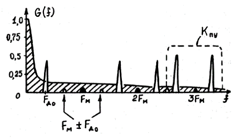 В формулах (3.16) - (3.19) значения ширины диаграммы направленности jg или jn подставляется в градусах, что учтено коэффициентом 57,3 в знаменателе соответствующих выражений. При частотно-модулированном зондирующем сигнале спектр преобразованного сигнала (рис. 3.8) содержит, как указывалось в разделе 3.1 ([l], с. 250-251), ряд составляющих на частотах nFм±Fд. Значение DFд, найденное из (3.15), есть ширина спектра любой из этих составляющих.