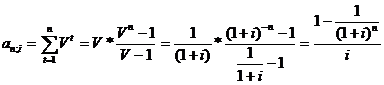 де аn;i – коефіцієнт приведення ренти, що показує, скільки рентних платежів утримується в сучасній величині; Визначимо даний коефіцієнт: Приймемо, що величина рентного платежу дорівнює 1. Дисконтовану величину першого платежу позначимо символом V, другого – V2 і т.д. У цьому випадку виникає ряд дисконтованих платежів, що представляють собою геометричну прогресію: V, V2, V3…Vn... Просумуємо члени даної прогресії, позначивши суму аn;i: