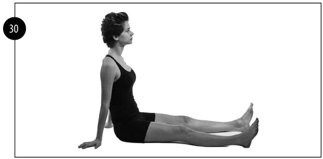 Упражнение выполняется только на голодный желудок! Сидя на коврике, спину держим ровно, под углом 90 градусов, ноги прямые, немного раздвинуты в стороны, руки на полу для поддержки, как это показано на рисунке 30.