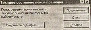 Ознакомившись с содержанием вашей рабочей таблицы после завершения очередной итерации, вы можете Продолжить процесс поиска или остановить, нажав кнопку Стоп. В последнем случае EXCEL выведет результаты, перевычислит рабочий лист и выведет диалоговое окно Результаты поиска решения без завершения процесса поиска. Такой режим пошагового поиска позволяет наблюдать последовательность приближений к оптимальному решению задачи. Во многих случаях это помогает «почувствовать» сходимость процесса и установить причины неудач и тупиков при поиске оптимального решения Для сохранения модели нужно либо принять предлагаемый поиском решения интервал, либо определить в поле Задайте область модели ссылку на ячейку, определяющую место размещения области модели мл рабочем листе. При этом модель сохраняется в вертикальном интер-валe ячеек, который начинается в выделенной ячейке и продолжается вн из на количество ячеек, определяемое программой поиска решения. При сохранении модели задачи удостоверьтесь, что предложенный программой интервал для области модели или столбец под ука-занной вами ячейкой не содержат данных.