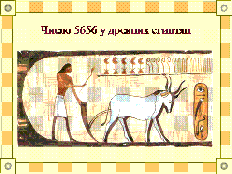 Древние египтяне на очень длинных и дорогих папирусах писали вместо цифр очень сложные, громоздкие знаки. Вот, например, как выглядело число 5656.