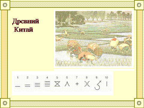 Прохождение китайской системы счисления более древнее и определяется между 1 500 и 1200 годами до нашей эры. Предки китайцев записывали свои вычисления на черепашьих панцирях и костях животных. Много лет спустя в другом регионе Китая появилась новая система исчисления. Потребности торговли, управления и науки потребовали развития нового способа написания цифр – палочками. Цифры от единицы до пяти они обозначали количеством палочек в зависимости от номера. Так, две палочки соответствовали номеру 2. Чтобы указать цифры от шести до девяти, одна горизонтальная палочка помещалась в верхней части цифры.