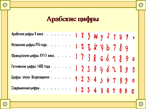 Однако Индия была оторвана от других стран, – на пути лежали тысячи километров расстояния и высокие горы. Арабы были первыми «чужими», которые заимствовали цифры у индийцев и привезли их в Европу. Чуть позже арабы упростили эти значки, они стали выглядеть вот так.