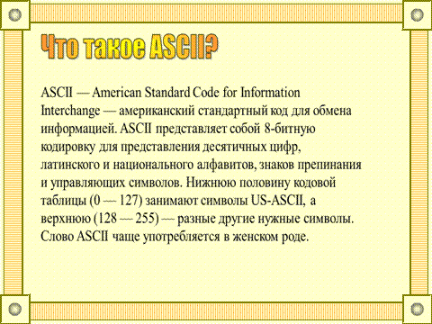 Информация с лат. "разъяснение, изложение, набор сведений". В настоящее время не существует единого определения информации как научного термина. С точки зрения различных областей знания, данное понятие описывается своим специфическим набором признаков. В информатике под информацией понимают основополагающее, очень ёмкое и глубокое понятие, вроде интуитивно определенное для каждого человека. Информация несет человеку знание об окружающем мире. Любая информация поступает к нам благодаря различным органам чувств (90% - зрение, 9% - слух, 1% - вкус, обоняние, осязание). Виды информации, поступающей к нам с помощью органов чувств, называется органолептической. Свойства информации: - полезность; - понятность; - актуальность; - полнота; - достоверность; Форма представления информации