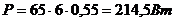 Qизб. – избыток тепла от электрооборудования и освещения; Qизб.1=Е·Р - избыток тепла от электрооборудования; Е – коэффициент потерь электроэнергии на теплоотвод (для освещения Е=0,55); Р – мощность ламп освещения, Вт;
