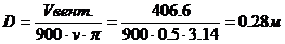 Н – потеря давления, Па; g – коэффициент местных потерь; l – длина воздуховода, м; v – скорость воздуха в воздуховоде, v=0,5 м/с; ρ – плотность воздуха, ρ=1,2 кг/м3. Необходимый диаметр воздуховода для данной вентиляционной системы равен: