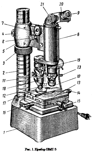 Теоретические сведения Испытание на микротвердость применяется при определении твердости таких объектов, которые не могут быть испытаны обычно применяемыми методами (по Бринелю, Роквеллу, Виккерсу), а именно мелких деталей приборов, тонких полуфабрикатов (лент, фольги, проволоки), тонких слоев, получающихся в результате химико-термической обработки (азотирования, цианирования и др.) и гальванических покрытий, поверхностных слоев металла изменивших свои свойства в результате снятия стружки, давления, трения и отдельных структурных составляющих сплавов. Для испытания на микротвердость применяется прибор ПМТ-3.